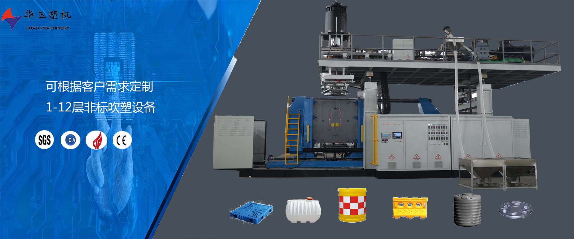 濰坊市華玉塑料機械有限公司創(chuàng)辦于貳零零貳年,是超大型全自動中空吹塑設備專業(yè)生產廠家。公司融合國內外先進技術和理念,專業(yè)設計、生產、銷售一層到十層的大型全自動中空成型機組。我公司生產的各型號吹塑機可生產50升到30,000升的各類塑料水桶,噸桶、雙環(huán)桶、水馬、路錐、隔離墻托盤、桌板、浮筒、皮劃艇、工具箱包等中空制品。優(yōu)良的品質、穩(wěn)定的性能、優(yōu)越的性價比使公司產品不僅暢銷國內市場,并出口到亞洲、東南亞、中東、歐洲、北美、南美、非洲等80多個國家和地區(qū),深受客戶的好評...